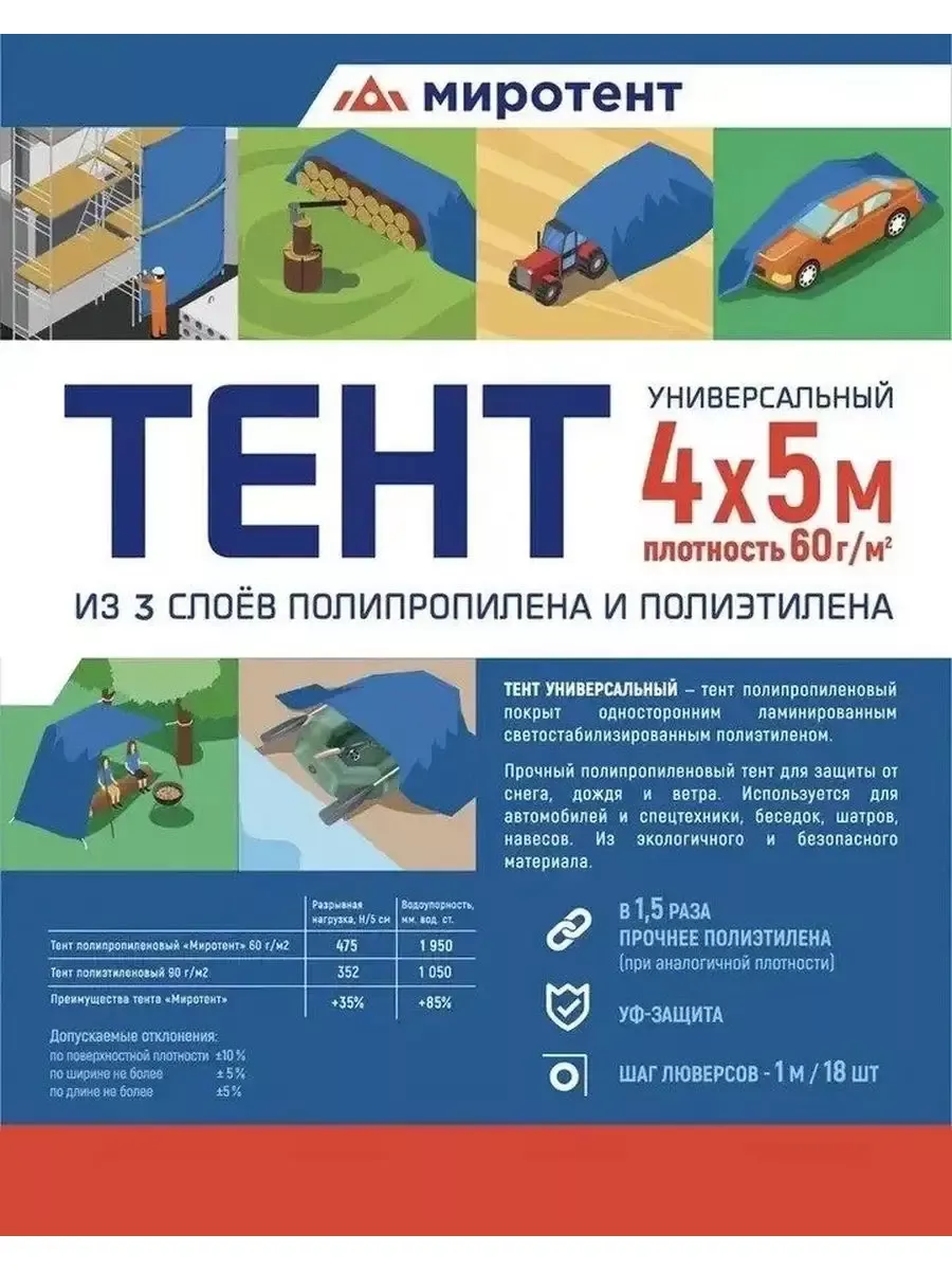 Тент Миротент 60 г/м2 4х5 с люверсами