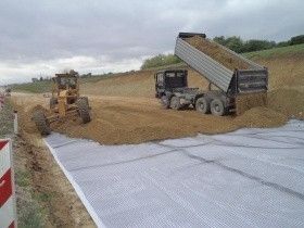 Геотекстиль Геоком с большим успехом используют в армировании склонов и различных откосов, канав. Он помогает бороться с эрозией почвы и обустраивать хороший дренаж. Геополотно предохраняет траншеи от засорения, за счет функции фильтрации, которой оно обладает. Ни одно строительство дорог немыслимо без применения материала Геоком. Только это геополотно способно гарантировать качество, выступая в роли разделительной прослойки и стабилизатора неустойчивых грунтов.В обустройстве строительных объектов, наряду с геополотном, используется георешетка Геоком, которая, представляет собой материал, состоящий и синтетических лент. Эти ленты скреплены между собой через равные промежутки ультразвуковой или термической сваркой, образуя ячеистую структуру, которая напоминает пчелиные соты, поэтому такой материал часто называют геоячейками или геосотами. Применение такой георешетки формирует каркас, способный фиксировать любой нестабильный грунт.